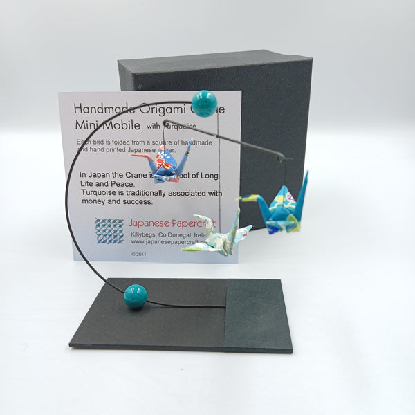 Mini origami crane mobile designed and made by Naomi Fleury of Japanese Papercraft.