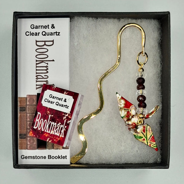 Origami Crane Bookmark with Garnet & Clear Quartz.