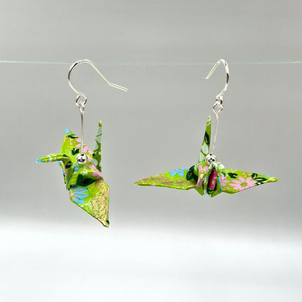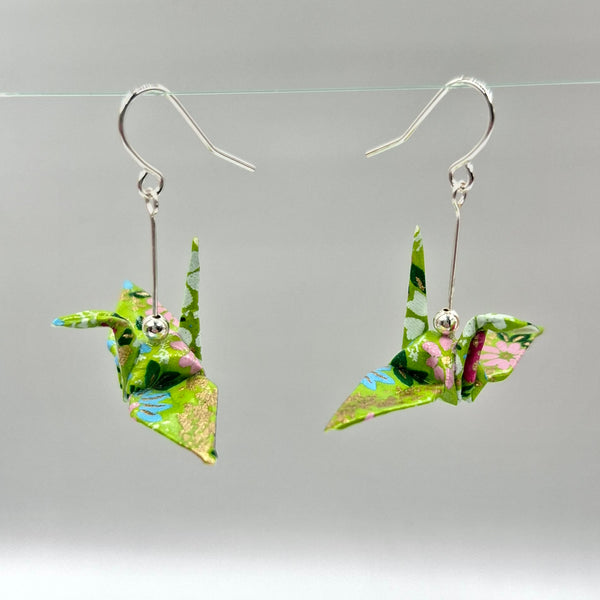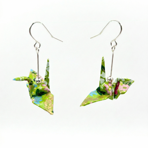 Each earring is hand folded by Naomi from a square of handmade & hand printed Japanese yuzen washi paper.